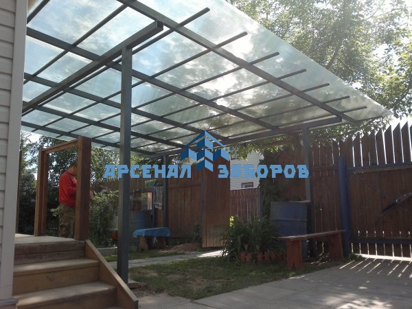 Стандартные характеристики каркаса навеса: столбы 80х80х3мм.
